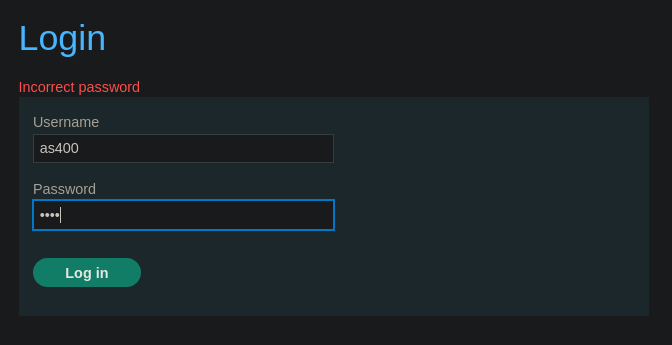 Si introducimos este nombre de usuario en el panel de login ya no nos dice Invalid username, ahora nos dice Incorrect password Por lo tanto, podemos deducir que el usuario as400 es válido