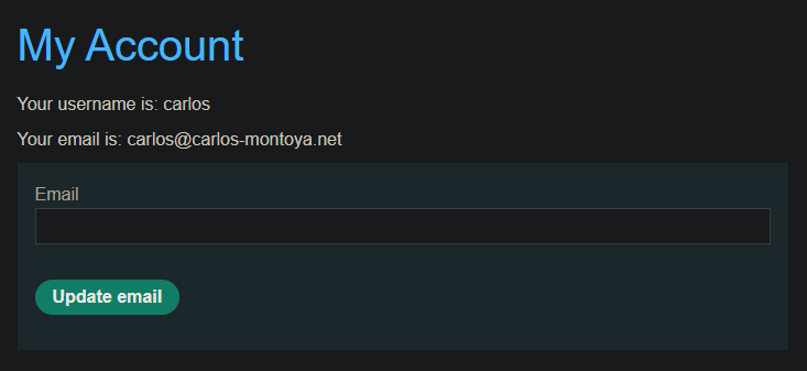 Si ahora accedemos a https://0afd0070041eb7598130da9f00c700a0.web-security-academy.net/my-account con la sesión de carlos iniciada podremos bypassear el segundo factor de autenticación. El problema de la web es que primero nos iniciamos la sesión y luego nos pide el código de dos factores, lo cual no tiene sentido porque podemos bypassearlo de esta forma tan sencilla