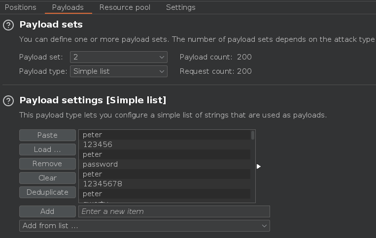 Cargamos como segundo payload el diccionario passwords_modified.txt