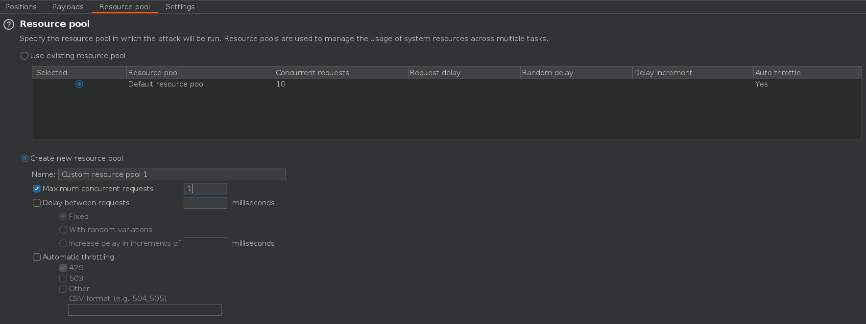 En el apartado Resource pool creamos una nueva pool para enviar las peticiones de una en una, de esto modo nos aseguramos de que las peticiones vayan en orden