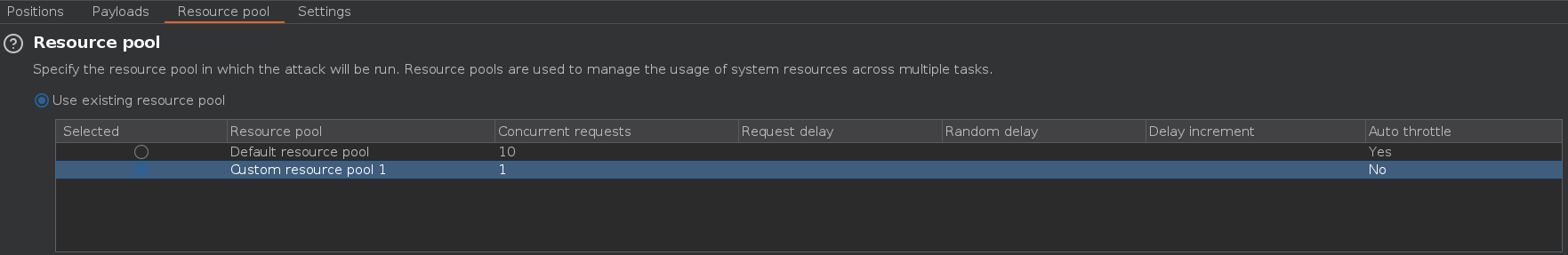 En Resource pool configuramos las peticiones para enviarlas de una en una