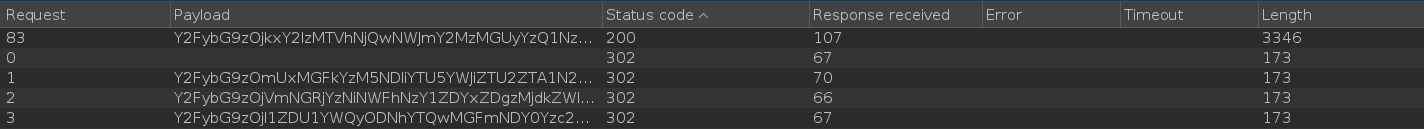 Si la contraseña es la correcta nos devuelve el código de estado 200, así que filtramos por código de estado y obtenemos el hash