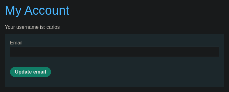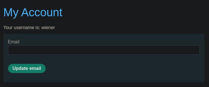 Rellenamos el campo Email, pulsamos en Update email y capturamos la petición con Burpsuite