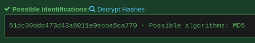 Identificamos el tipo de hash con el que se cifra la contraseña, para ello podemos usar webs como https://hashes.com/en/tools/hash_identifier