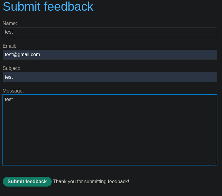 Pulsamos en Submit feedback y vemos un formulario