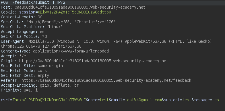 Hacemos click sobre Submit feedback y capturamos la petición con Burpsuite