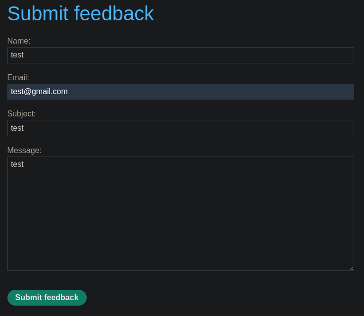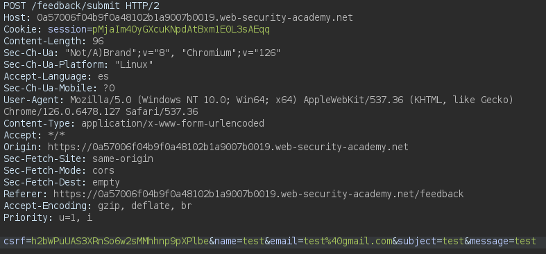 Hacemos click sobre Submit feedback y capturamos la petición con Burpsuite