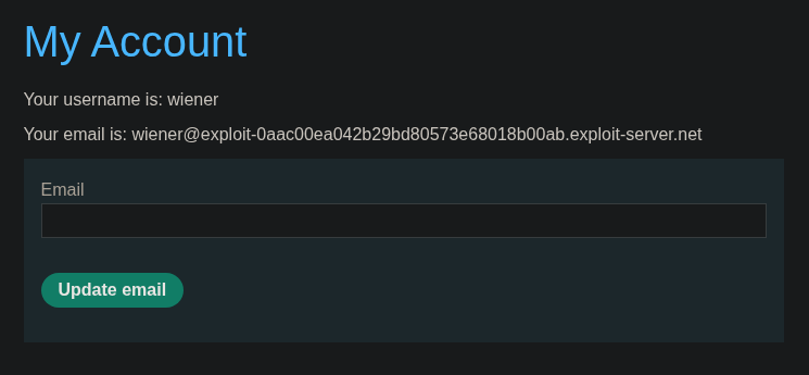 Puedes iniciar sesión en nuestra propia cuenta usando las credenciales wiener:peter. Cualquier correo enviado a esta cuenta puede leerse a través del cliente de correo del Exploit server