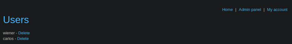 Esto ha sido posible debido a que las bibliotecas JWT suelen ofrecer un método para verificar tokens y otro que simplemente los decodifica. Por ejemplo, la biblioteca de Node.js llamada jsonwebtoken tiene los métodos verify() y decode(). En ocasiones, los desarrolladores confunden estos dos métodos y solo pasan los tokens entrantes al método decode(). Esto significa que la aplicación no verifica la firma en absoluto. Para completar el laboratorio debemos borrar el usuario carlos