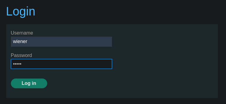 Pulsamos sobre My account y nos logueamos con credenciales wiener:peter