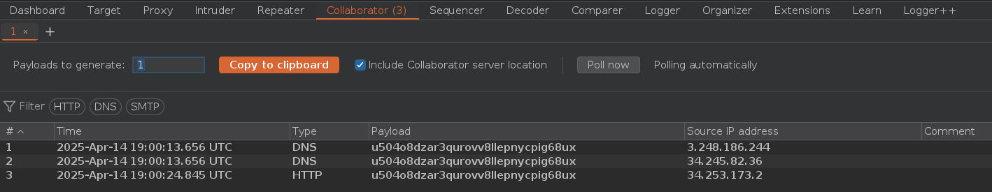 Recibimos varias peticiones, lo cual quiere decir que la web es vulnerable a SSRF