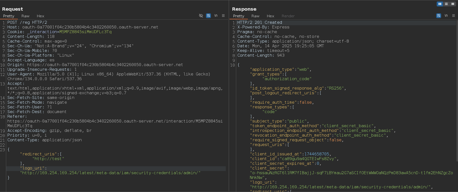 Este laboratorio permite que las aplicaciones cliente se registren dinámicamente mediante el servicio OAuth a través de un endpoint dedicado al registro de usuarios. Algunos datos específicos del cliente se usan de forma insegura por el servicio OAuth, lo que expone a la web a un posible SSRF