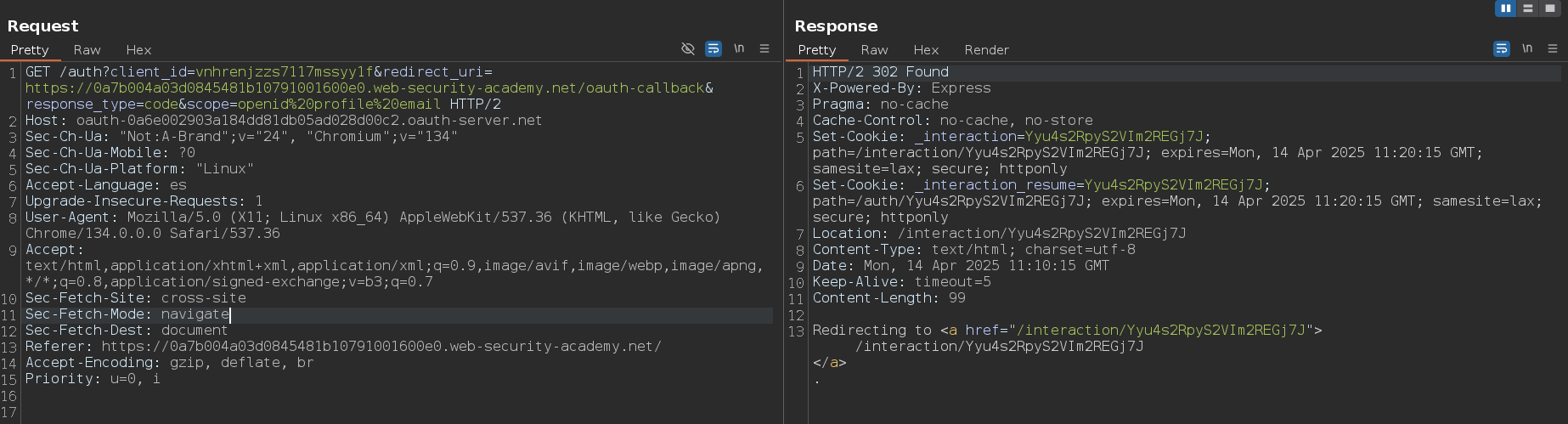 Antes de completar este laboratorio es recomendable leerse esta guía de vulnerabilidades de OAuth https://justice-reaper.github.io/posts/OAuth-Vulnerabilities-Guide/