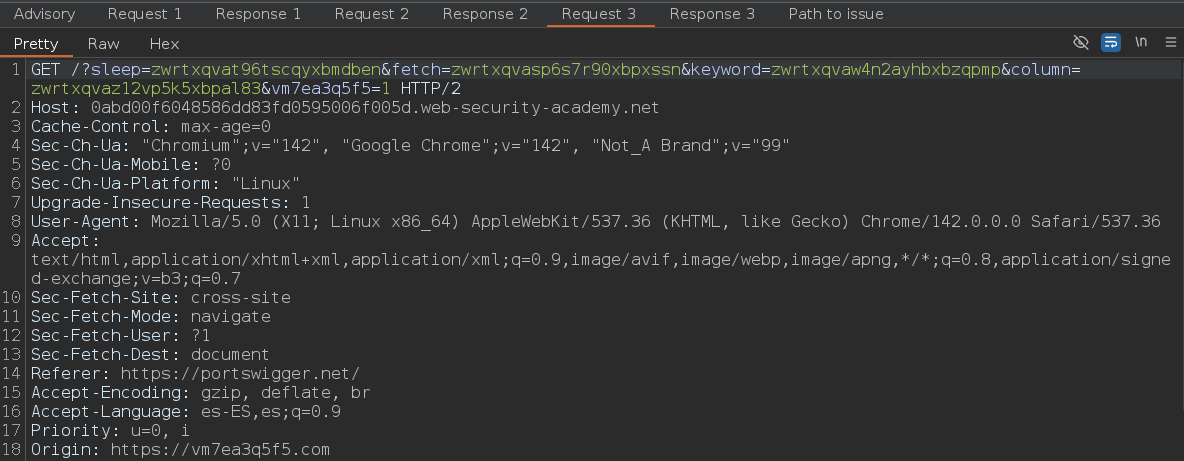 Este laboratorio es vulnerable a web cache poisoning porque un parámetro de consulta es unkeyed. Un usuario visita regularmente la página de inicio de este sitio usando Chrome. Para resolver el laboratorio, tenemos que envenenar la caché con una respuesta que ejecute alert(1) en el navegador de la víctima