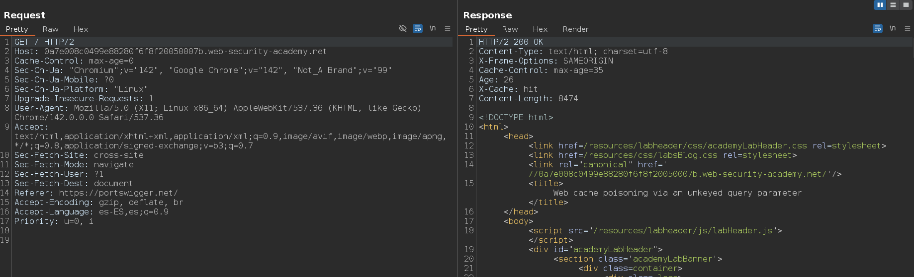 Laboratorio de Portswigger sobre Web Cache Poisoning