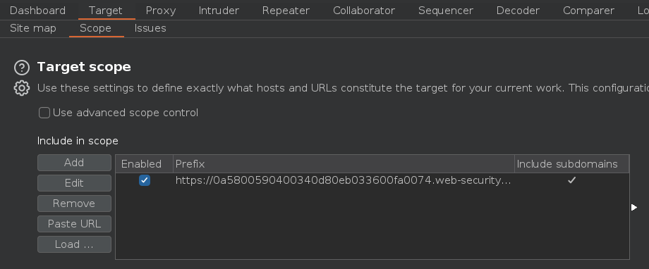 El segundo paso es identificar y evaluar entradas unkeyed, para ello vamos primero a crawlear la web con Burpsuite y a navegar manualmente por ella. Para hacer esto nos dirigimos a Target > Site map > Click derecho sobre el dominio > Scan
