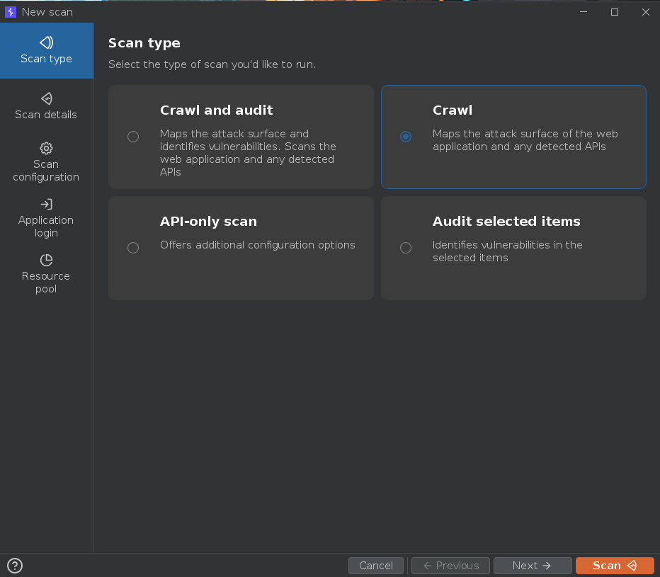 Seleccionamos la opción de Crawl y pulsamos sobre Scan. Mientras Burpsuite crawlea la web, vamos a navegar por ella de forma manual