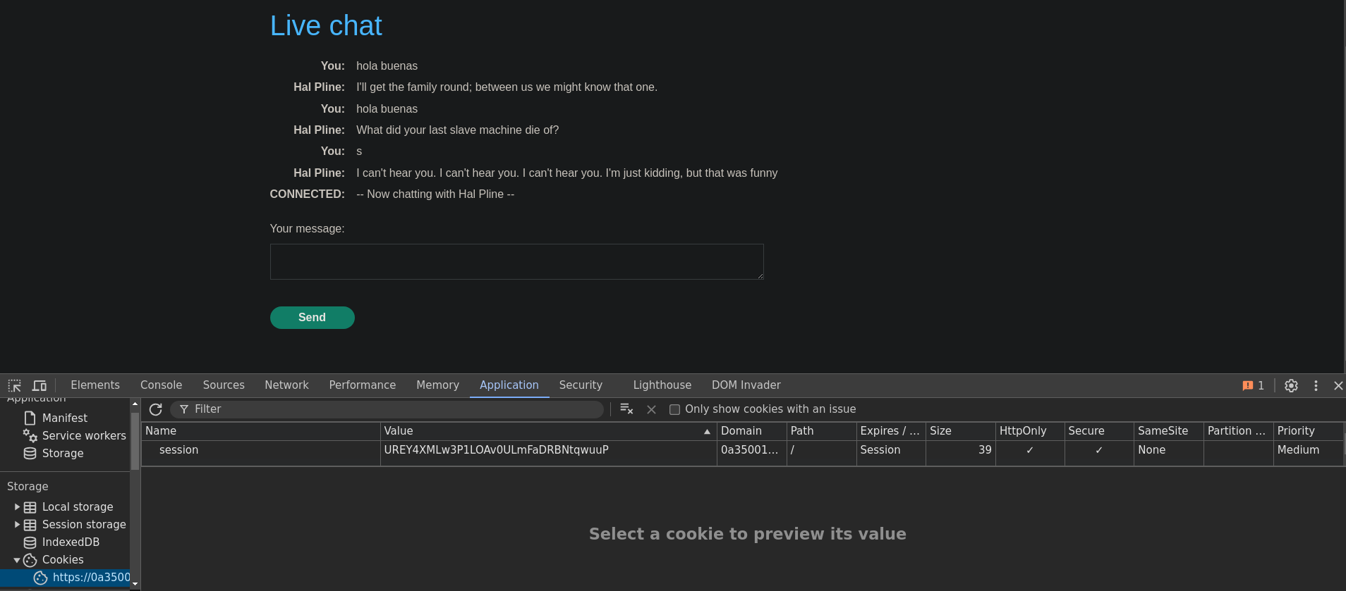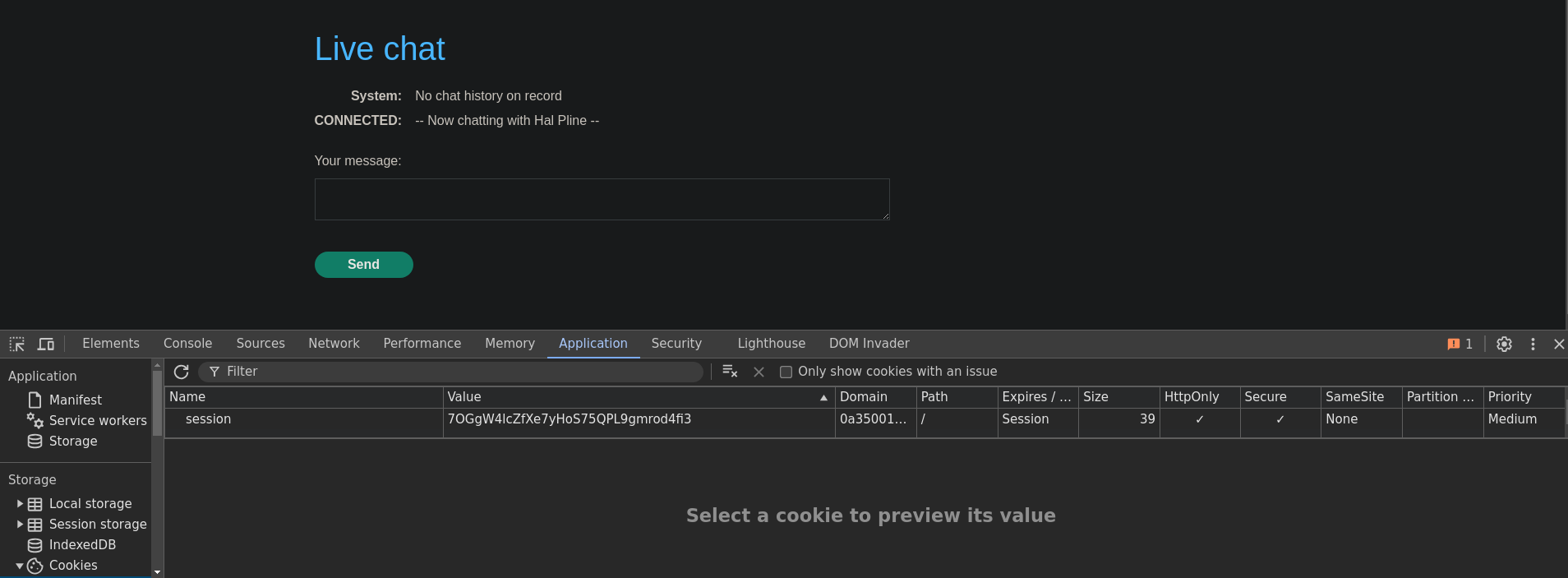Si nos abrimos el inspector de Chrome vemos que tenemos una cookie asignada