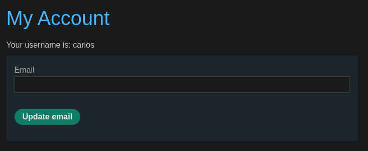 Pulsamos sobre My account e iniciamos sesión con las credenciales carlos:no5jm5dbv3e89jna369b