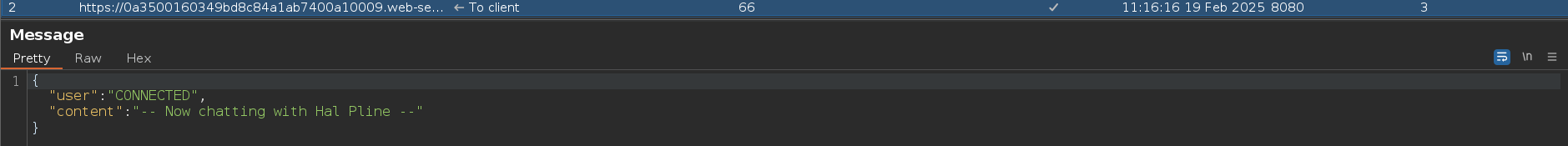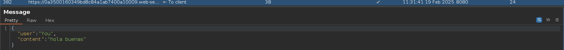 Si nosotros recargamos la web con F5 podemos ver como se cargan todos los mensajes nuevamente y se restaura el chat al completo. Podemos comprobar esto desde Burpsuite, cada vez que recargamos la web se cargan todos los mensajes y se vuelve a establecer la conexión