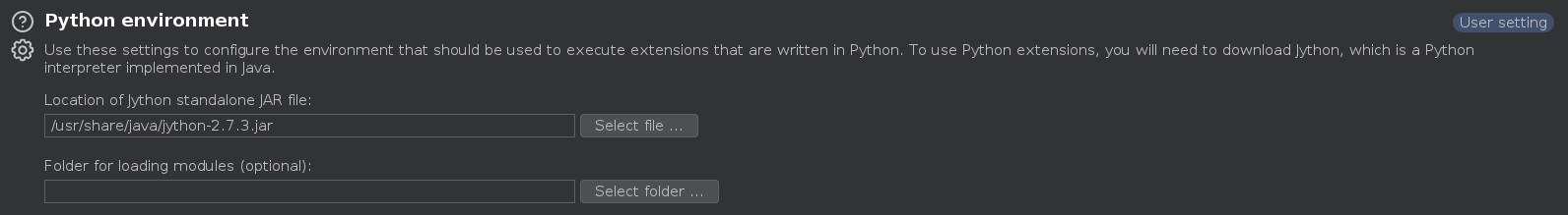 Una vez instalado nos vamos a Extension > Extensions settings y añdimos la ruta en la que se aloja el .jar