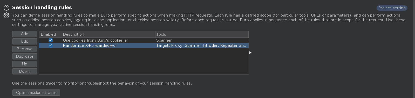 Para hacer que se ejecute la extensión en todas las peticiones debemos acceder a Settings > Sessions y añadir una nueva regla