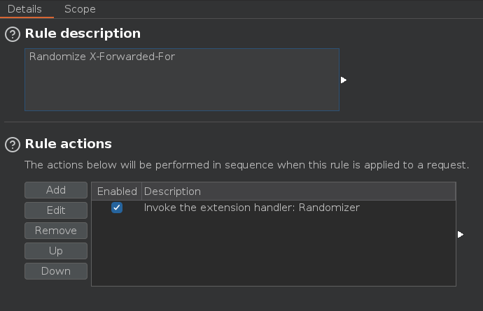 Si enviamos un payload que tenga contenido malicioso y nos los vuelve a detectar nos banearía también la nueva IP, para evitar esto vamos a usar la extensión Random IP Address Header https://github.com/PortSwigger/random-ip-address-header.git o Request Randomizer https://github.com/portswigger/request-randomizer. Para este caso he preferido usar Request Randomizer pero ambas funcionan igual. Para poder instalar Request Randomizer primero debemos instalar jython, podemos instalarlo desde github https://github.com/jython/jython o con apt