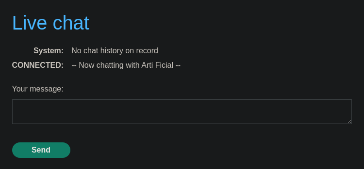 Pulsamos sobre Live chat y vemos que hay un chat de IA. Este tipo de chats suelen ser LLM's, un tipo de modelo de IA entrenado con grandes volúmenes de texto para procesar y generar lenguaje natural. Estos modelos, como ChatGPT, son una subcategoría dentro del NLP (Natural Language Processing) y se especializan en tareas como traducción, resumen, análisis de texto y generación de respuestas