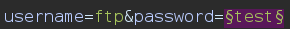 A continuación debemos hacer lo mismo con la contraseña, de modo que nos vamos al Intruder nuevamente y en username introducimos como valor ftp y en el campo password marcamos el valor para bruteforcearlo