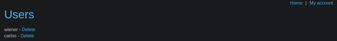 Si accedemos a https://0a13001403de35cd811e201100ae0089.web-security-academy.net/administrator-panel veremos un panel administrativo desde el cual podemos borrar al usuarios carlos completando así el laboratorio