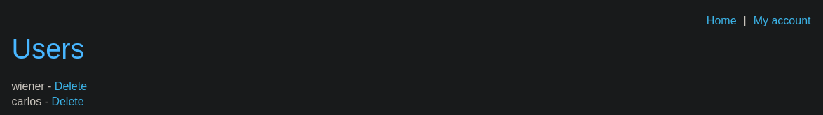 Si accedemos a https://0ab100d704393ca180cc8f46008d006e.web-security-academy.net/admin-xng8bf vemos un panel administrativo desde el cual podemos borrar al usuario carlos y completar el laboratorio