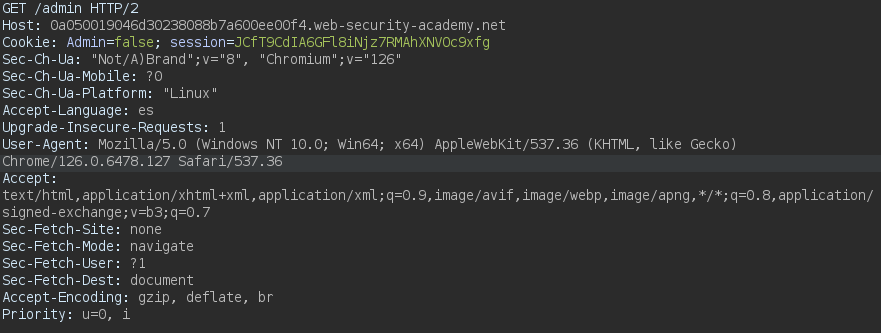 Si interceptamos la petición mediante Burpsuite vemos que hay un parámetro Admin=False