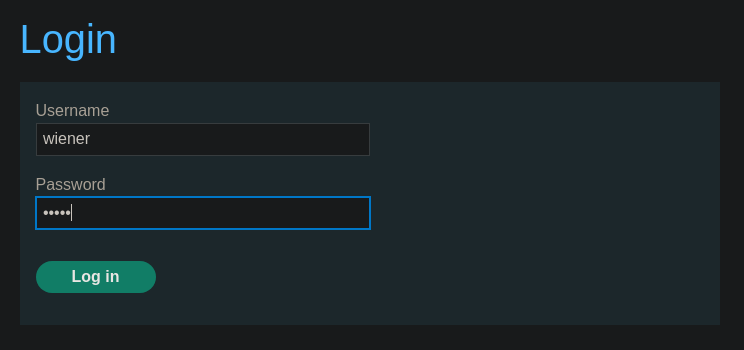 Pulsamos sobre My account y nos logueamos con credenciales wiener:peter