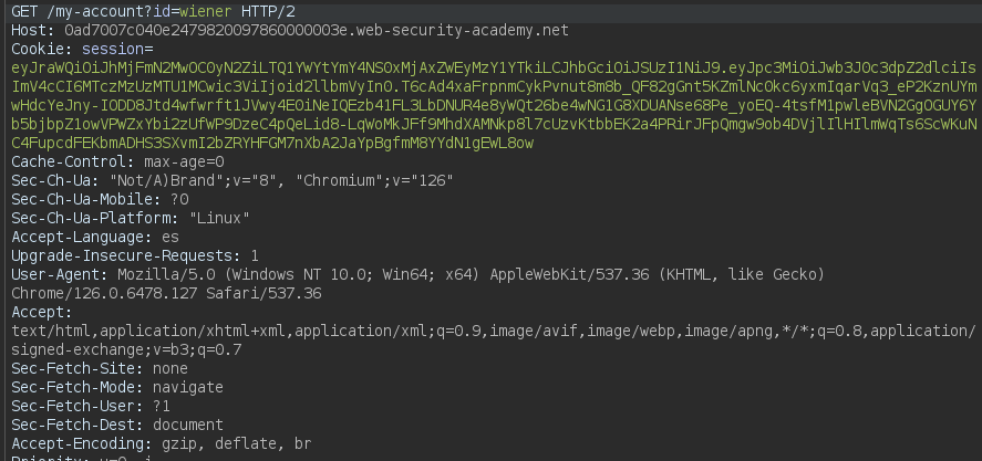 Este laboratorio utiliza un mecanismo basado en JWT para manejar las sesiones. El servidor admite el parámetro jwk en el header del JWT. Esto se utiliza a veces para incrustar directamente en el token la clave correcta de verificación. Sin embargo, no verifica si la clave proporcionada proviene de una fuente confiable. Para resolver el laboratorio, debemos modificar y firmar un JWT que nos dé acceso al panel de administración en /admin y eliminar al usuario carlos. Podemos iniciar sesión en nuestra propia cuenta utilizando las credenciales wiener:peter