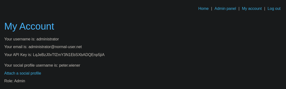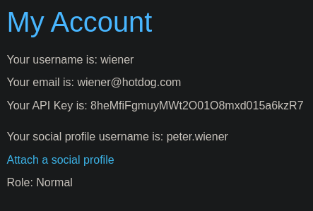 Para explotar el CSRF vamos a dirigirnos a My account y vamos a pulsar en Attach a social profile