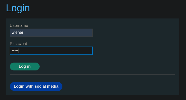 Si pulsamos sobre My account nos redirige a este panel de login, donde nos podemos loguear con las credenciales wiener:peter