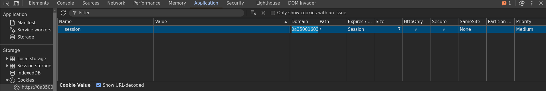 Si nos abrimos el inspector de Chrome vemos que tenemos una cookie asignada
